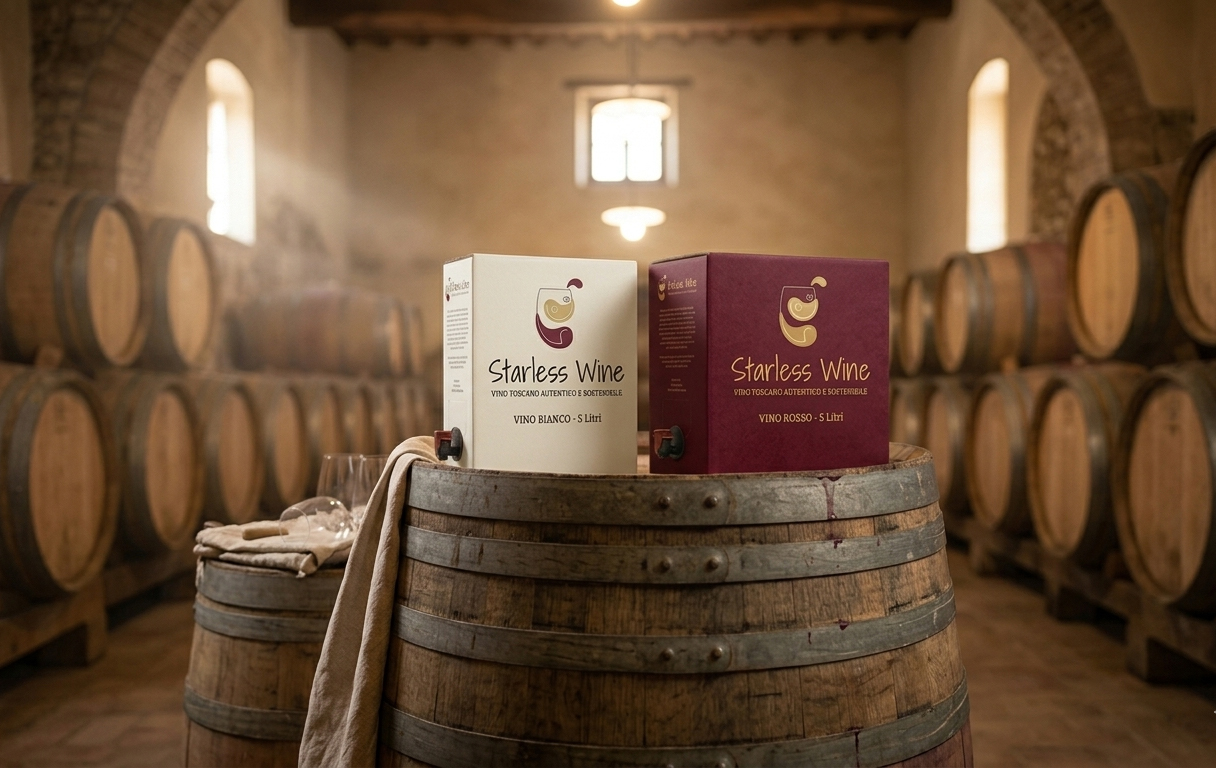 Oltre alla raffinata selezione di vini in bottiglia, Starless Wine propone un vino rosso e un vino bianco toscani in formato bag in box da 5 litri senza scendere a compromessi con la qualità.